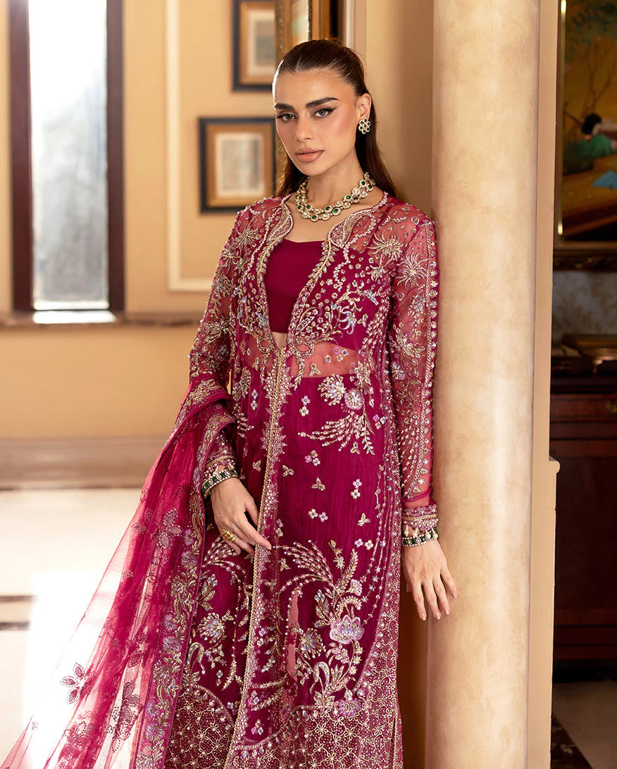 • Embroidered, sequined & hand-embellished front daman border (organza)
